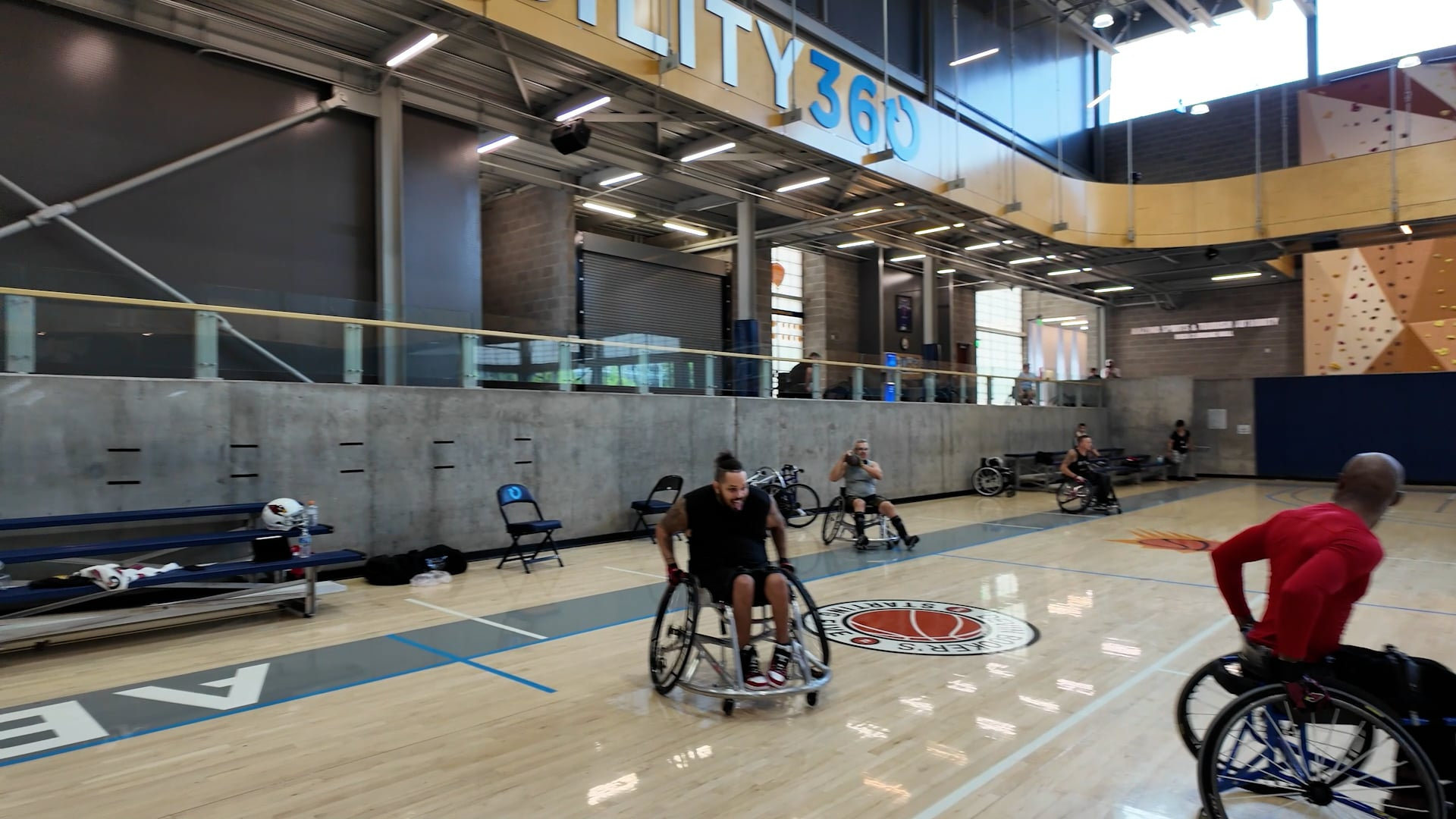 Wheelchair football is a fast-paced team sport. Played on a hard surface, typically indoors or on a turf field, teams compete to advance an oval-shaped football into the opponent’s end zone to score points. Players maneuver specialized sports wheelchairs to pass, catch, and carry the ball while evading defenders. The game emphasizes strategy, teamwork, and agility, with modified rules to accommodate wheelchair play, including no tackling—replaced by two-hand touch or flag pulling.